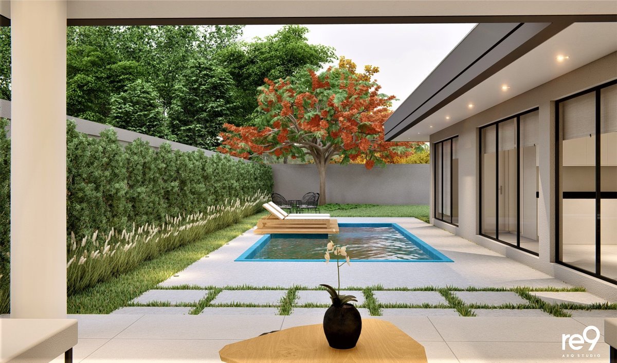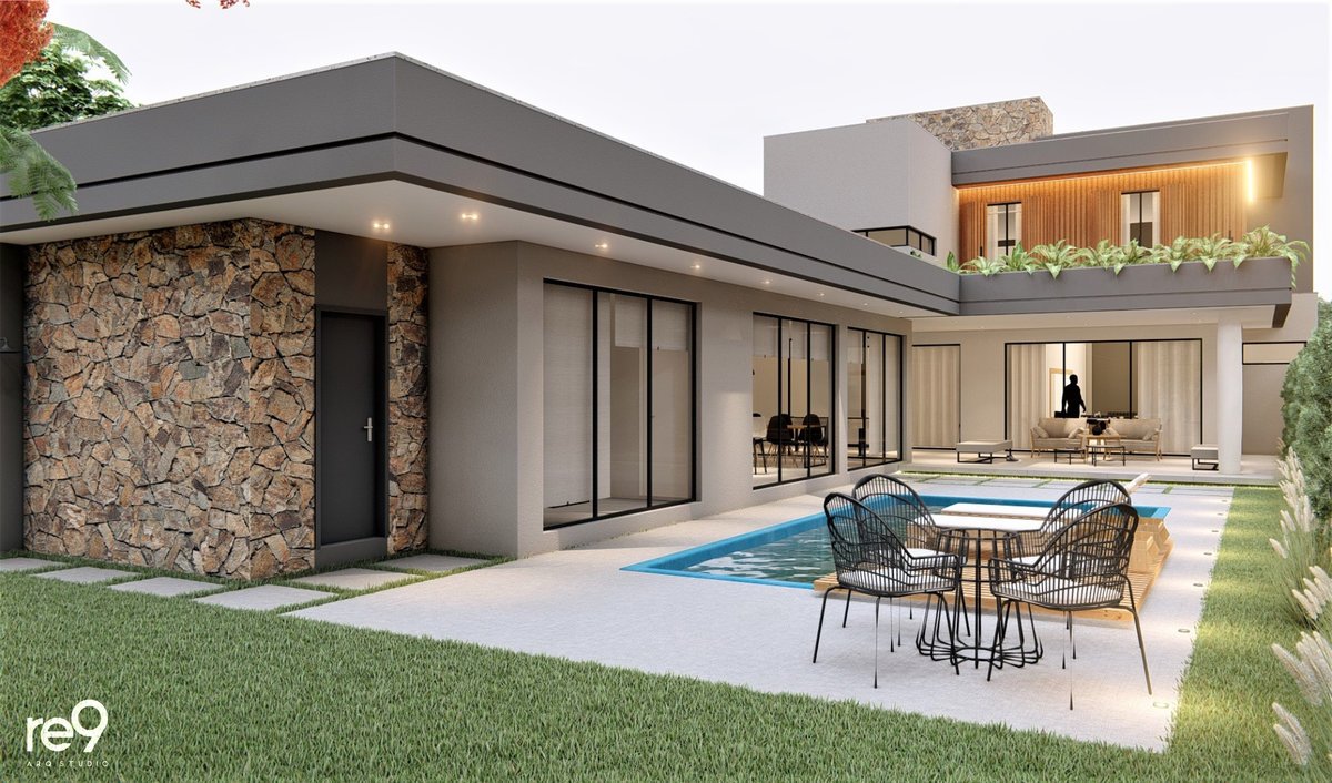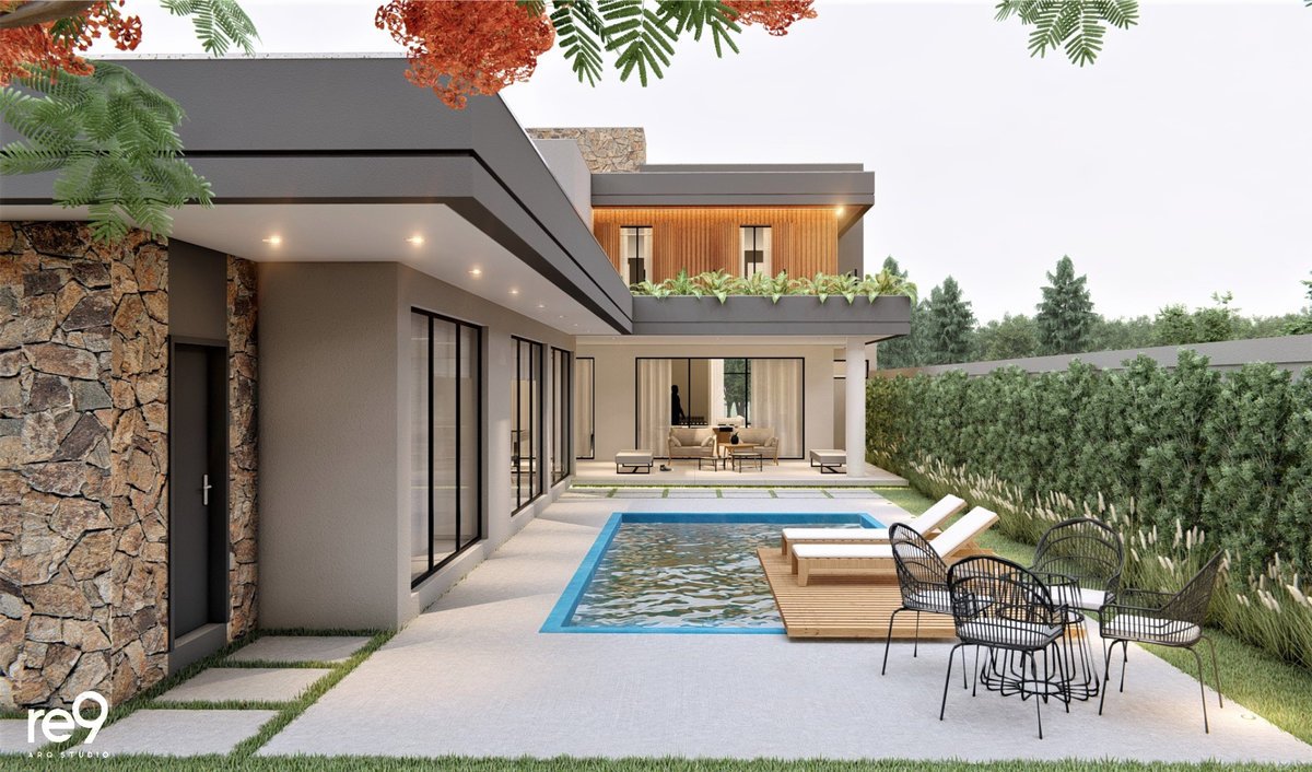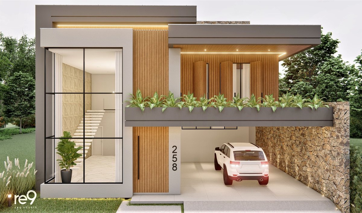 A Casa M.G foi concebida para um casal que desejava uma residência ampla, sofisticada e imponente, com ambientes bem resolvidos em um terreno de 12,76m de frente. Com 461m² distribuídos em dois pavimentos, o térreo abriga a área social e de serviços, enquanto o pavimento superior concentra a área íntima, sempre valorizando a orientação solar e a ventilação natural para maior conforto. O espaço de lazer foi integrado ao térreo por meio de uma ampla varanda, que conecta interior e exterior de forma fluida. A madeira assume papel de destaque nas fachadas, aplicada em revestimentos e brises, conferindo identidade, elegância e aconchego ao conjunto arquitetônico. A piscina, estrategicamente posicionada no pátio, funciona como um ponto de luz e frescor, trazendo vida e leveza à composição. O resultado é uma casa marcante, que alia imponência, sofisticação e conforto em perfeita harmonia.